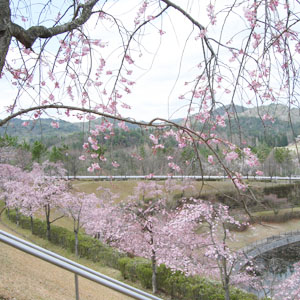 ミホミュージアムのアプローチも数種のしだれ桜が植えられ