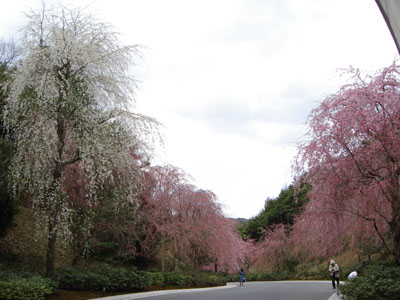 両側にしだれ桜が植えられ