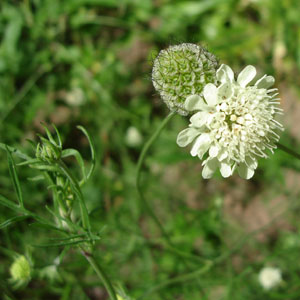 宿根し春から咲き続けているマツムシソウや