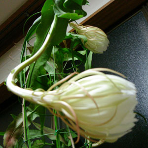 朝にはすっかりしぼんでしまう月下美人
