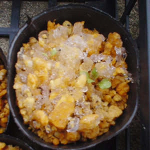 平たい氷をポットの丸い形に