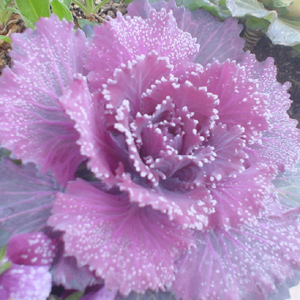 氷がついた葉ボタンは