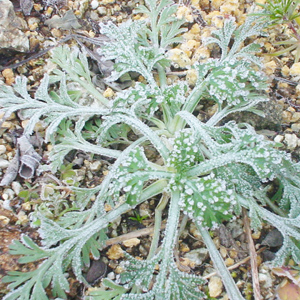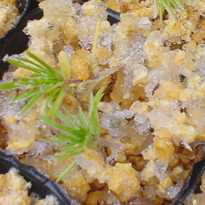 チビ苗を植えた黒ポット毎に霜柱が凍っていた